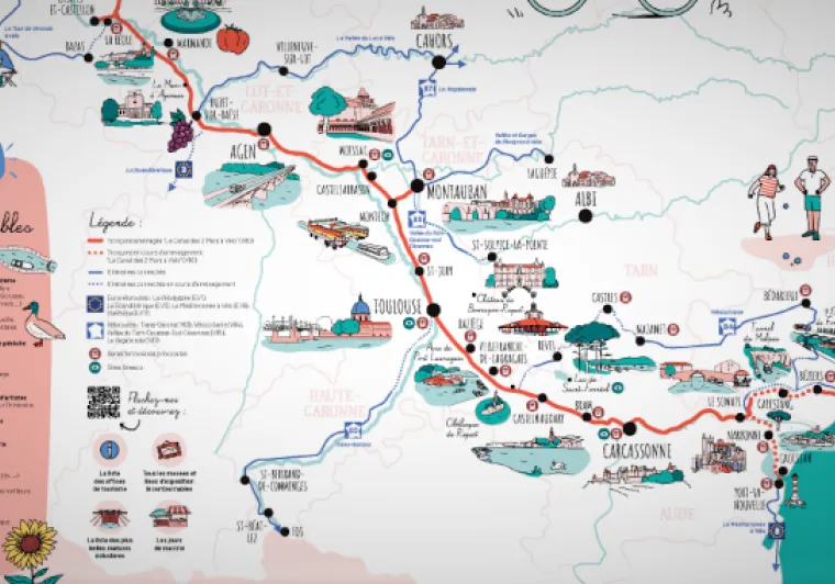 Découvrez le Canal des Deux Mers à vélo, itinéraire cyclable qui relie la Méditerranée à l'Atlantique. Sur 750 km, pédalez le long de l’Estuaire de La Gironde, du Canal de Garonne et du Canal du Midi, inscrit au patrimoine mondial de l'Unesco, pour découvrir des sites et des paysages inoubliables.