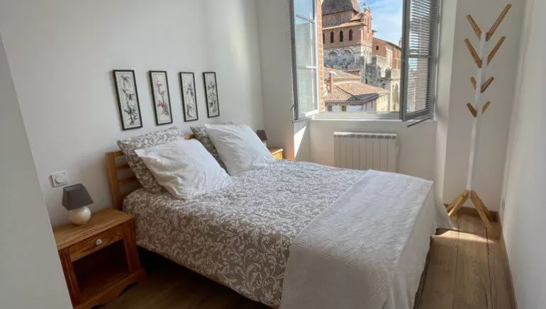 Le logement comprend une pièce à vivre lumineuse avec un coin-cuisine, éléments intégrés (Micro-ondes, four, réfrigérateur, plaques), un espace salle à manger (table et chaises) et salon avec canapé lit 2 personnes. 1 chambre (1 lit 140 x 200), 1 salle d'eau (lave-linge) et 1 wc indépendant. Accès à une salle de lecture au 1er étage. Wifi dans le logement. Draps et linge de toilette fournis et compris dans le prix. Possibilité d'un forfait sèche linge sur place en option. Hébergement labellisé "Tourisme et Handicap".