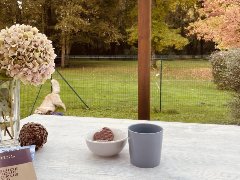 Vous pouvez également venir avec votre chien qui profitera à la fois de la forêt avoisinante et du jardin clos propre au Gite.