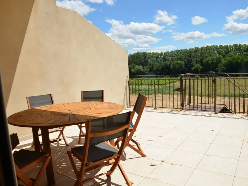 *terrasse extérieur 25 m2 vue sur vignoble, barbecue plancha 1 table, chaises longues