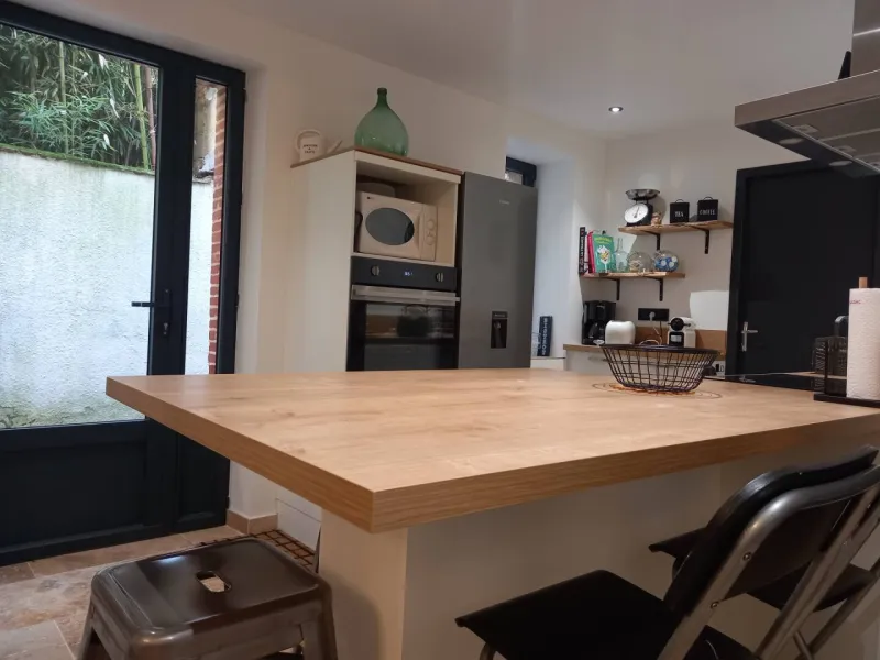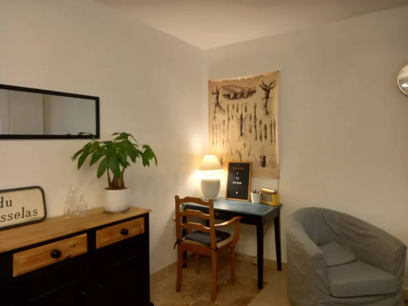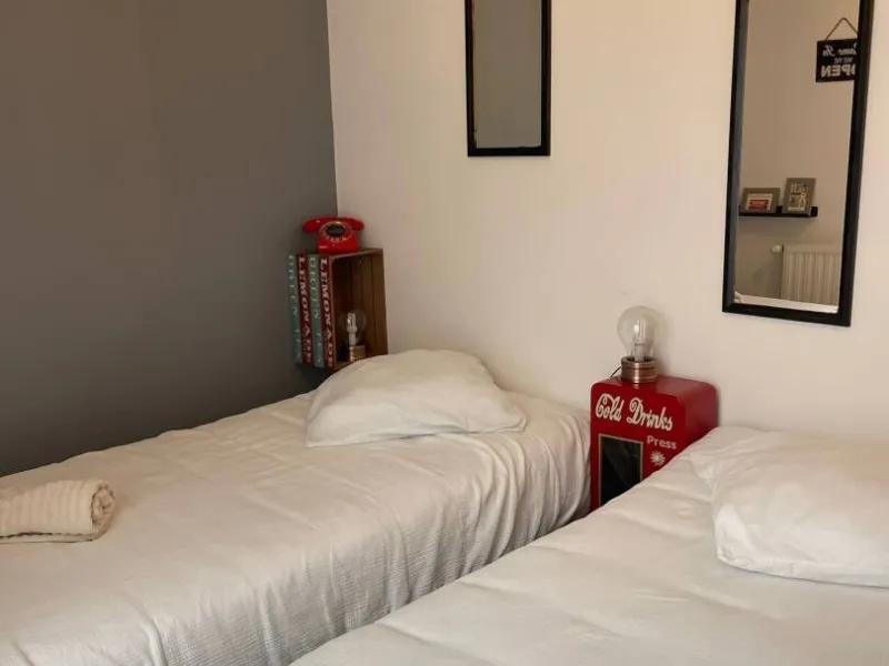 À l'extérieur, une cour intérieure entourée de murs élevés peut accueillir deux voitures de taille moyenne, abriter des vélos et offrir un espace extérieur convivial avec un salon de jardin pour huit personnes et un barbecue. Deux vélos sont également mis gracieusement à la disposition des hôtes. Profitez pleinement de votre séjour à "La Maison 4" où tranquillité, confort et convivialité se conjuguent harmonieusement.