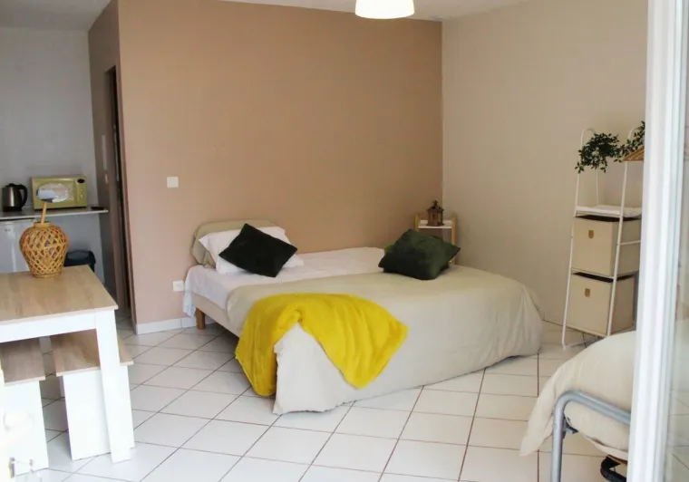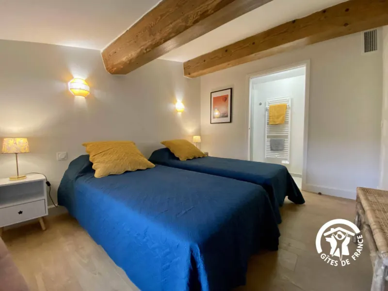 _2 chambres (1 lit 160 et 2 lits 90) chacune avec salle d'eau privative (1 seule est proposée à la location, au choix), WC indépendant sur le par palier.