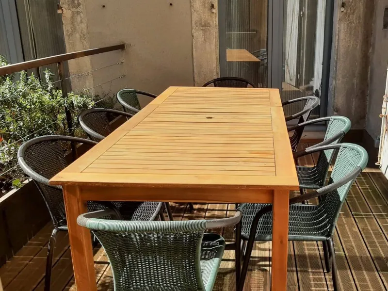 Idéalement situé au coeur de la Bastide Saint Louis de Carcassonne, tout proche à pied de toutes commodités et des sites remarquables de notre ville, "le Sélamat" est un très grand gite tout équipé doté de 4 chambres et 2 salles de bain/WC pouvant accueillir de 2 à 8 personnes et un bébé. Nouvellement rénové et modernisé tout en préservant son charme d'antan, il est situé au 1er étage d'un ancien hôtel particulier du XVIème siècle. Au calme, il bénéficie d'un balcon et d'une terrasse donnant chacun sur une des cours intérieures qui l'entourent.Accès gratuit au réseau WIFI. Linge de lit et de bain inclus dans les tarifs indiqués.