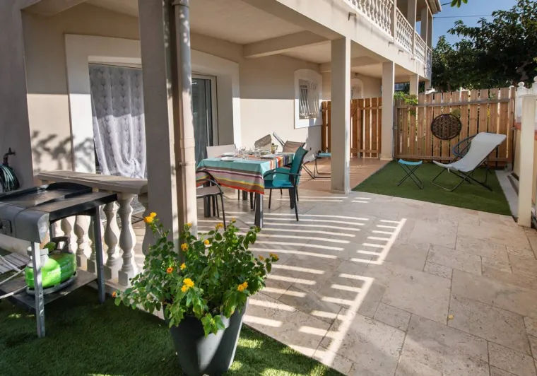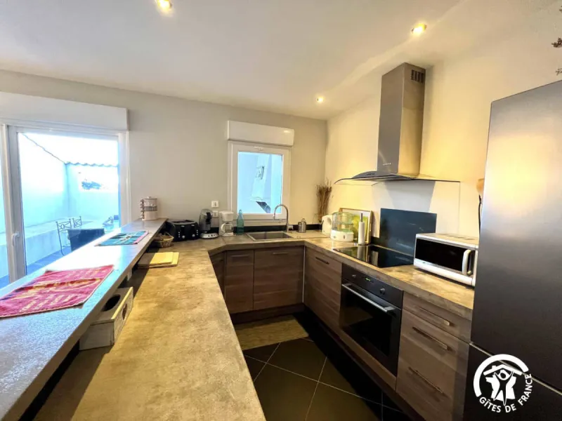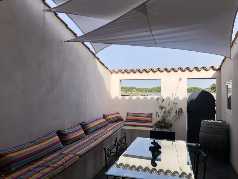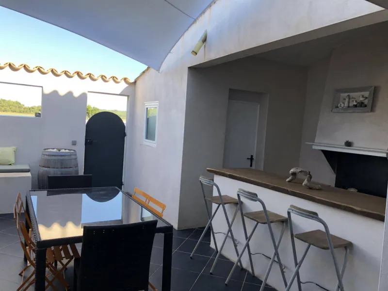 Point de départ des sentiers en bordure d'étang, ou vous découvrirez la faune et la flore très diversifiée de ce territoire. A proximité vous visiterez les salins de Gruissan et profiterez des plages de la méditerranée. Pour les amateurs de randonnée, le massif de la Clape est à 2 km. Sur la station se trouvent tous les commerces nécessaires au bon déroulement de votre séjour.Gîte comprenant au rez de chaussée, grand séjour-cuisine avec salon, donnant sur la terrasse extérieure, équipée d'un salon de jardin, cuisine d'été couverte avec plancha et salle d'eau avec WC accessible par l'extérieur. A l'étage, 4 chambres avec 2 lits en 160 et 4 lits en 90. Salle d'eau avec WC. Climatisation réversible. Parking en devant de porte face à l'étang. Les draps de lit sont fournis (séjour 7 nuits minimum).