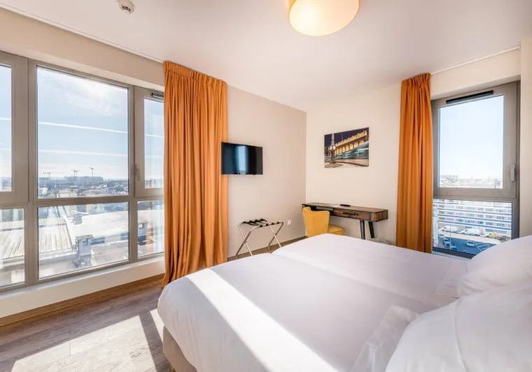 Eklo Bordeaux Centre Bastide est un hôtel à Bordeaux centre, situé au cœur de l’écoquartier Bastide Niel, dans un environnement moderne. Idéal pour un séjour à Bordeaux, il bénéficie d’un emplacement stratégique à proximité des lignes de Tram A et E (station Jardin Botanique), permettant un accès rapide au centre-ville de Bordeaux, à environ 10 minutes de la rue Sainte-Catherine et de la Cathédrale Saint-André. Cet hôtel pas cher à Bordeaux centre propose 199 chambres adaptées à tous les voyageurs. Des chambres privatives (solo, duo, double, familiales) aux studios et appartements pour des séjours courts ou longs, vous y trouverez la chambre idéale, que vous cherchiez un hôtel économique ou un hôtel familial à Bordeaux. Eklo Bordeaux dispose d’un restaurant French Kiss, proposant une cuisine française gourmande de saison, et une carte de cocktails, le tout dans une ambiance guinguette.Cet établissement vous intéresse ? Rendez-vous sur leur site pour réserver ou en savoir plus.